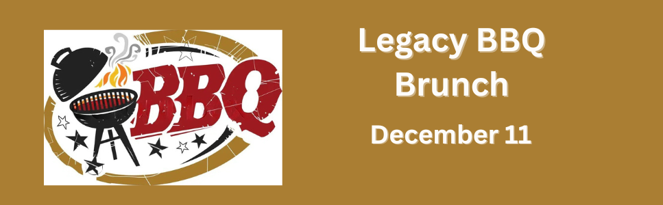 Join the Legacy Community for a wonderful Christmas celebration. We will sing carols, laugh over fun ice-breakers, hear encouraging stories and (something different for the holidays) feast on a delicious BBQ meal! We'll provide the meat, slaw, and beans. You can bring Christmas cookies!