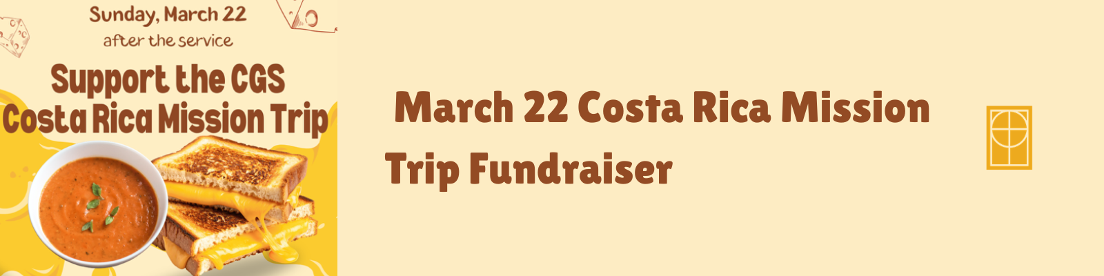 Join us on March 22 right after church in the Commons (S214) for lunch in support of the Costa Rica Mission Trip!